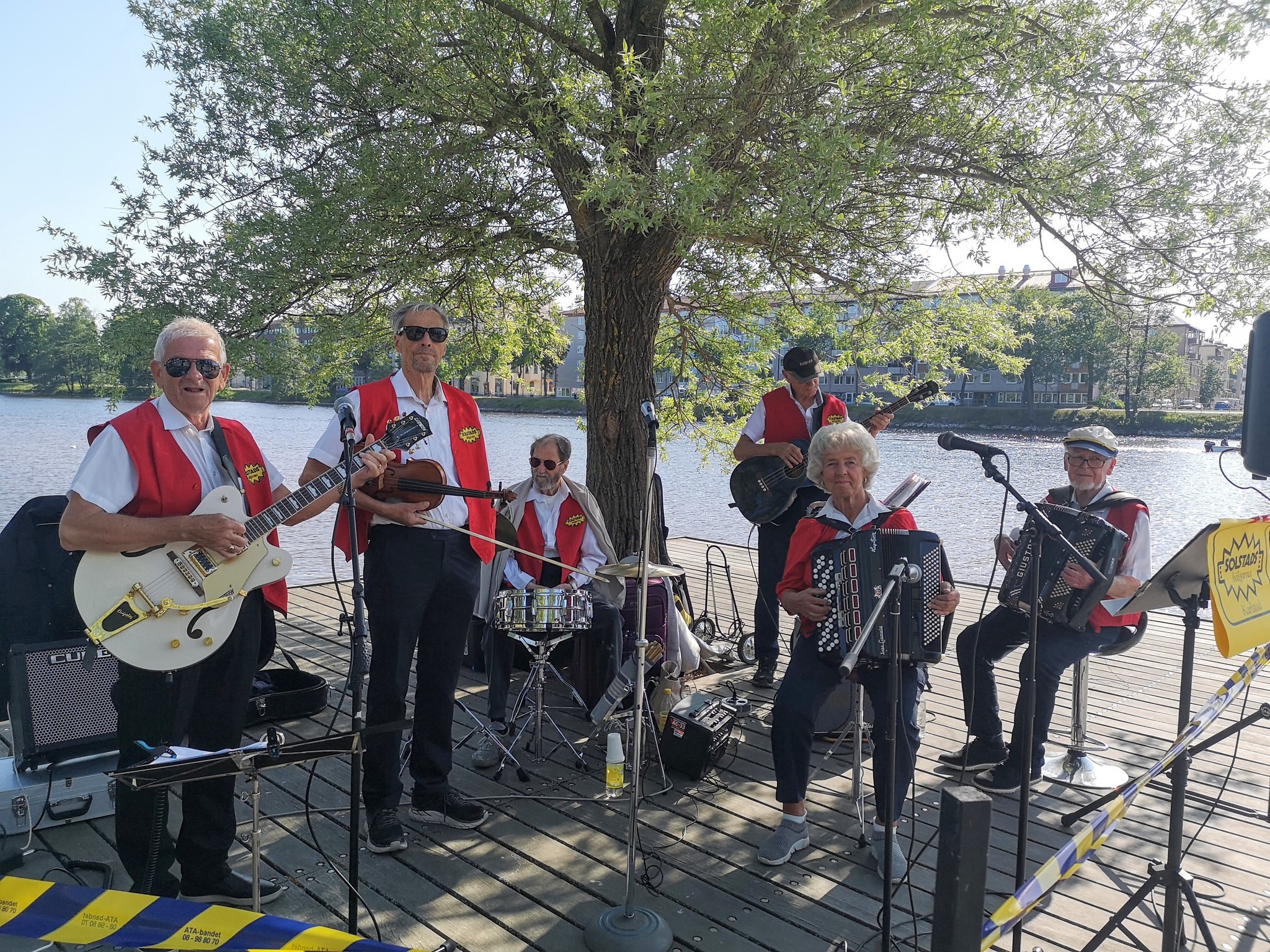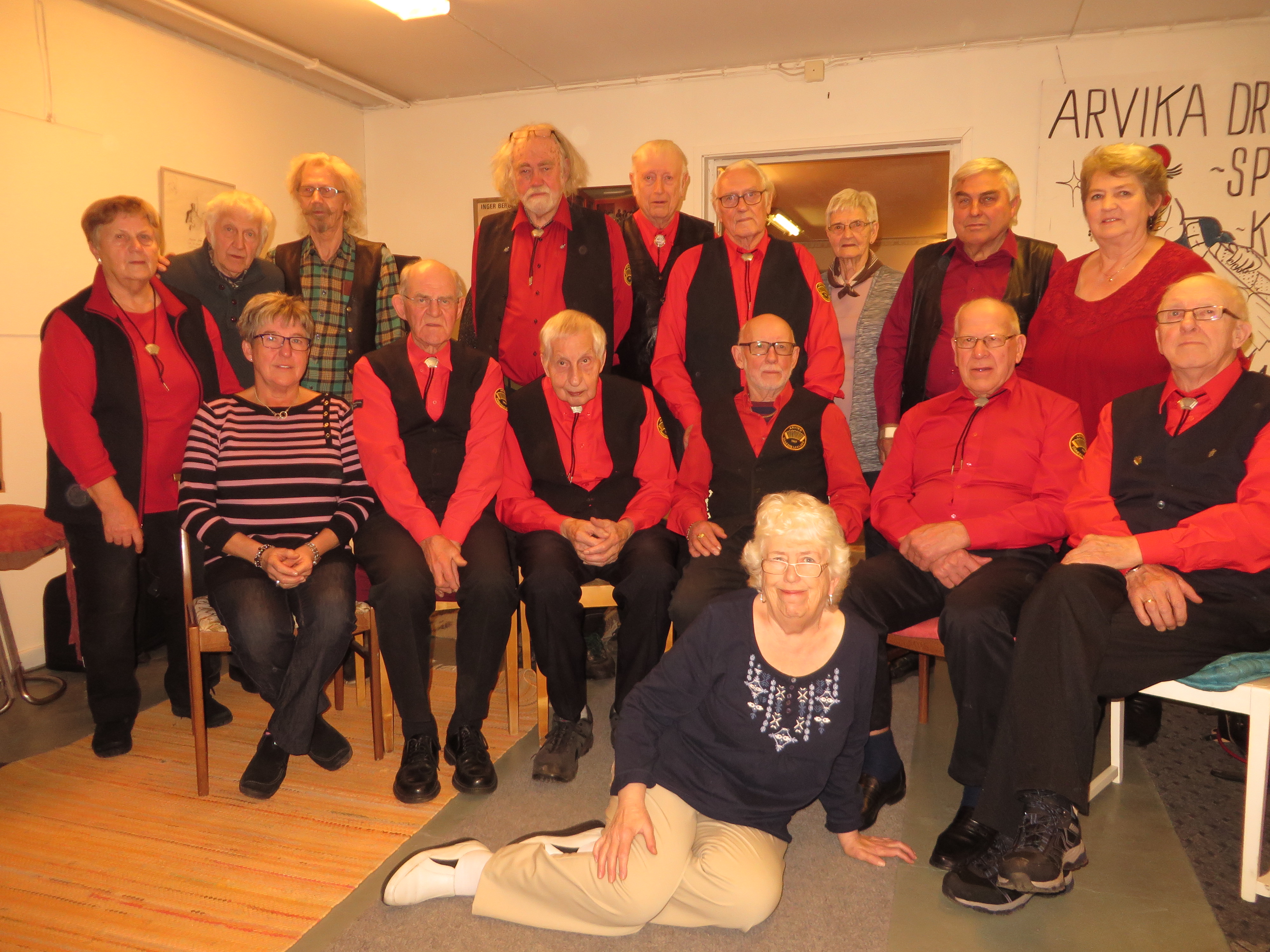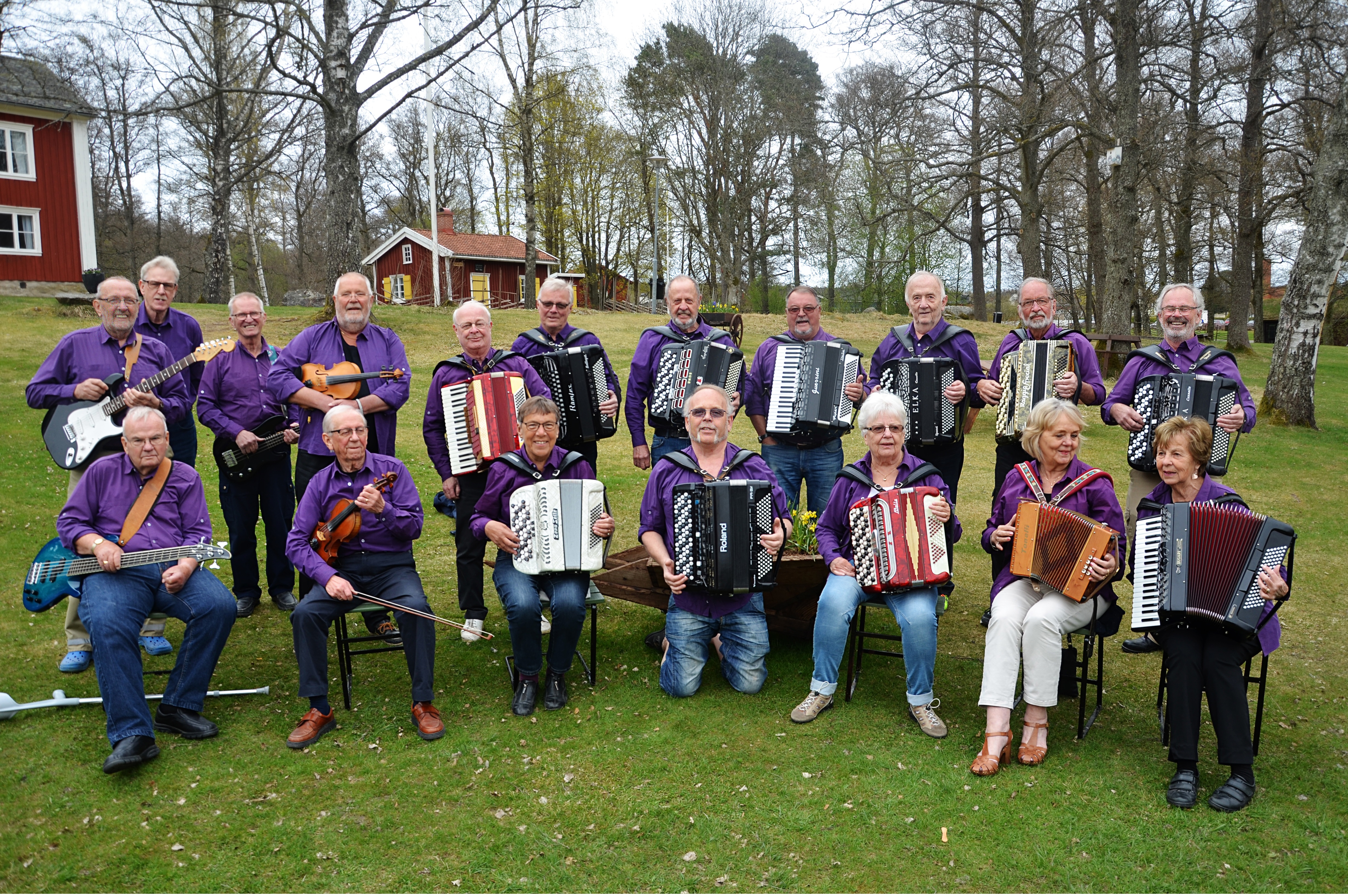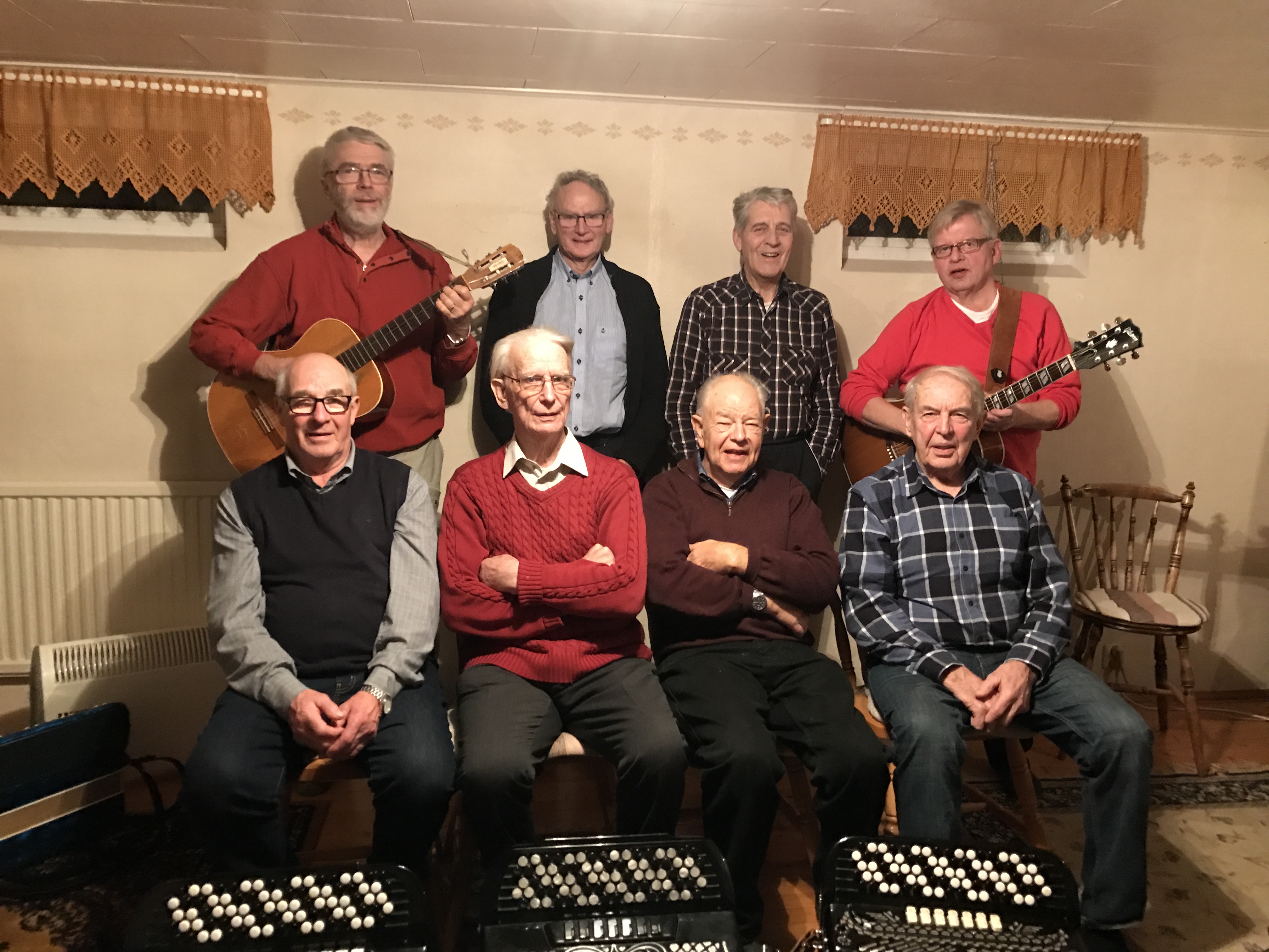 Stående från vänster: Vivianne Nilsson, nöjeskommittén; Knut Fhyr, gitarr; Hans Hedenskog, bas ; Jens Normann Lövlie, dragspel ; Hans Bruun, dragspel ; Frank Lindström, dragspel ; Singan Håkansson, nöjeskommittén ; Leif Nauclér, sång ; Birgit Olsson,valberedning sång.