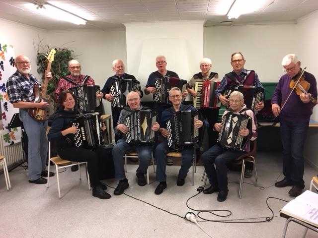 Sittande från vänster: Annika Ferm-Nilsson , durpel, kassör; Olle Söderström ordförande, dragspel, sång ,spelledare; Sven Gustafsson, dragspel ; Rolf Johansson, dragspel o bas; Bengt Johansson, klubbmästare dragspel o sång ; Ingvar Håkansson, dragspel, Vice ordförande.